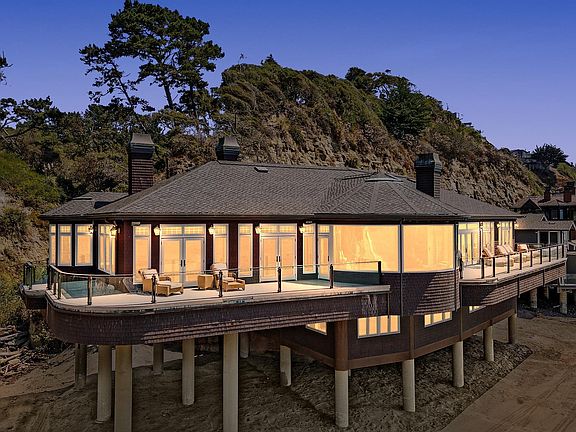 A ONCE-IN-A-LIFETIME beachfront estate awaits. This ICONIC coastal property sits directly on the sand at the end of Las Olas Drive - Spanish for "The Waves" on a private, gated road within SeaCliff Park. One of the largest beachfront properties in Santa Cruz County, it offers TOTAL PRIVACY and panoramic views of Monterey Bay (you can see WHALES and DOLPHINS cruising by - it's AMAZING!). With 5 bedrooms, a chef's kitchen, home theater, and a large wraparound deck, there's room to gather, relax, and live well. Floor-to-ceiling glass - including a dramatic curved window in the living room-gives the feeling of being aboard a luxury yacht. A mahogany-paneled office, compass rose inlay aligned to TRUE NORTH, extremely high quality cabinetry from England, and many other unique architectural details create value that will last. Enjoy fresh air, QUALITY OF LIFE in a setting that promotes wellness, walkability, and connection to nature. Though it feels worlds away, this peaceful retreat is close to everything - Downtown Santa Cruz, Capitola, Silicon Valley, San Francisco, and major airports. The private gate, large property, 3-car garage, and LOTS of GUEST PARKING make this home a place for all of your friends and family to enjoy the very best of Northern California coastal living!