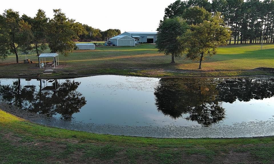 Private pondTall pine treesMultiple outbuildingsWell-maintained county road