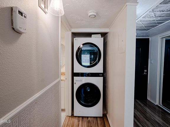 Rare Find LOWEST PRICE INSIDE LAUNDRY fully remodeled condo features a guard-gated entry, and large ENCLOSED PATIO for extra living space that is not included in the sqft. Home boasts high-grade Wood tile flooring, Newly Updated KItchen with Stainless appliances & Quartz Counters. Unique features are: woodshop, private storage unit & underground parking. Located in Scottsdale Shadows, a community surrounded by $1M+ condos, enjoy resort-style amenities, including golf course, 3 heated pools, spas, gym, saunas, tennis courts, library, fine art studio, and business center. HOA fees cover AC/heat, water, trash. This Amazing modern condo is within walking distance to Fashion Square, restaurants & More. . Must See..Won't Last Long!