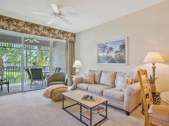 Start your vacation today in this comfortable, super clean and well stocked condo in beautiful Lely Resort in Naples. This turnkey furnished two bedroom/two baths unit overlooks a beautifully landscaped area and scenic pond. This second-floor condo comes with brand new living room furniture including a gel-infused memory foam sleeper sofa, so that the unit sleeps six persons. New dish washer, high-quality neutral carpets installed in 2022 and the A/C was replaced in 2019. The condo is an excellent investment property that generated over $40,000 gross rental income in 2023 so far. Located in the unique Greenlinks neighborhood within walking distance to a gorgeous resort-style pool and spa and Sam Snead restaurant and bar. Enjoy 42 free rounds of golf with a mandatory golf membership to the Championship Mustang Island and Flamingo Island courses. Great rental potential as these condos can be rented daily, on-site rental agency available. Come see this beautiful property, today!