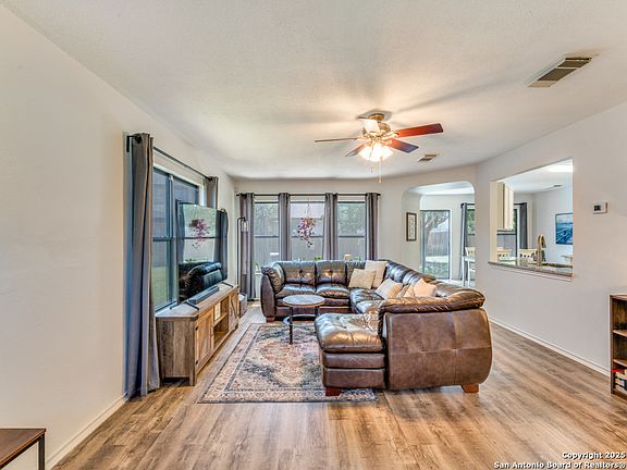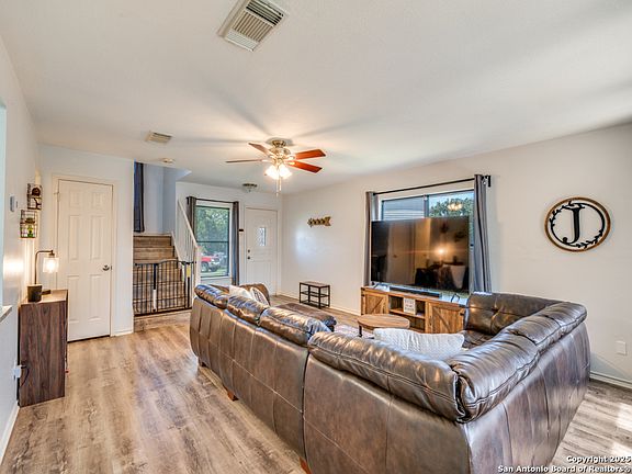 Welcome to this beautiful two-story brick home in San Antonio, TX! Featuring a 1-car garage and a long driveway when extra parking is needed, this home combines comfort and functionality. Step inside to discover stunning luxury vinyl plank flooring-no carpet anywhere-creating a seamless, low-maintenance living experience. The kitchen is a standout with sleek granite countertops, stainless steel appliances, and a smooth-top stove~range, perfect for everyday cooking and entertaining alike. A sliding glass door off the dining area leads to the back patio, making it easy to enjoy indoor-outdoor living year-round. Upstairs and down, every space feels fresh and move-in ready. The fenced backyard offers plenty of space to relax, play, or garden-and includes a storage shed for your tools and extras. Conveniently located near shopping, dining, and major roadways, this home is ideal for anyone looking to enjoy San Antonio living with modern updates and a spacious layout. Don't miss this great opportunity-schedule your showing today!