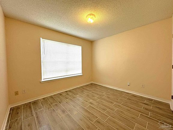Just like new with fresh paint and brand new modern tile flooring throughout. An open floor plan with a kitchen that boasts a new stainless steel stive and fridge that overlooks the family room. This is a split floor plan comes with cathedral ceilings offering lots of space. The back yard features a privacy fence and patio for your privacy. The home is rounded off with an oversized garage. This delightful neighborhood is conveniently located close to shopping, NAS Pensacola and the beach. Pets are permitted upon approval.