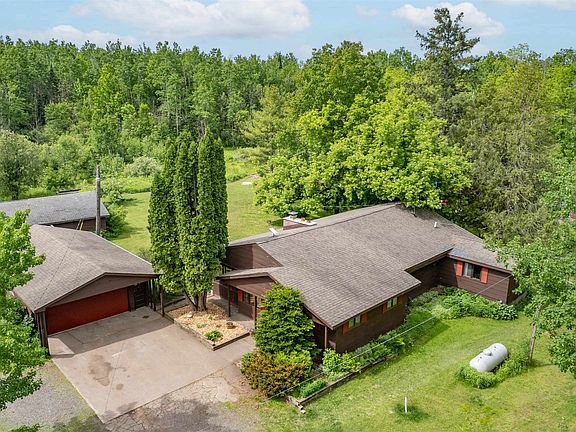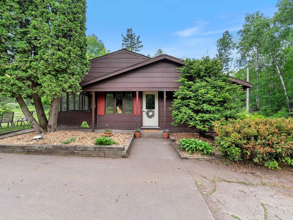 Welcome to your dream retreat along the Amnicon River! Nestled on 10 acres of pristine woodlands, this 4 bedroom, 1 bathroom rustic rambler-style home offers unparalleled privacy and tranquility. Step into a world of outdoor living with a screen porch perfect for those early morning cups of coffee. Explore 2/3 mile of private trails winding through your own forest sanctuary, pop up a tent by the river for a camping adventure, gather around the cozy fire pit for an evening gathering, or spend the afternoon treating your green thumb in your fenced in garden that features a small orchard or apple, pear, and plumb trees. The property also boasts a beautifully refurbished barn with a chicken coop. You're own slice of homesteading, in your backyard! Inside, the rustic charm continues with warm, inviting living spaces. Multiple wood burning fireplaces can be used to take away the chill during the winter months. 3 bedrooms are located along the right. An open concept den, dining, and kitchen area with a sliding glass door out to the backyard. A spacious laundry room with ample storage is tucked towards the back of the home, along with a full bathroom, and a fourth bedroom. Despite its private, secluded feel, the property is conveniently close to main roads, ensuring easy access to modern amenities. Enjoy the best of both worlds—peaceful country living just 30 minutes from Duluth, MN, and 15 minutes into Superior, WI. Half a mile away from access to the Tri County corridor and Amnicon Falls State Park. This unique property offers the perfect blend of comfort, nature, and convenience. Don't miss your chance to own a piece of paradise along the Amnicon River!
