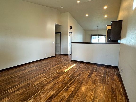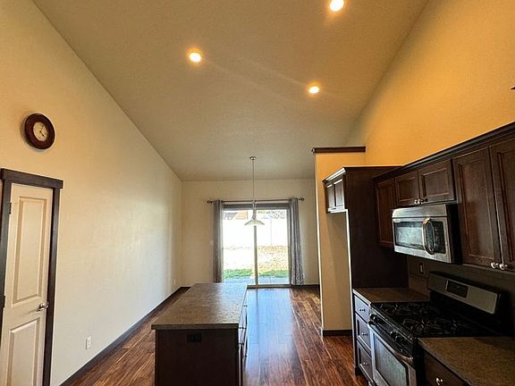 Open and inviting layoutHigh lofted ceilingsModern kitchenSleek countertopsLots of natural lightStainless steel appliancesRichly colored wood floors