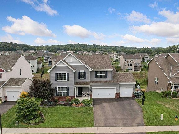 Immaculate 5BR/4BA two story set on a pond lot in the Dakota Crossing neighborhood. Better than new construction! Stunning oversized center island kitchen boasts granite counters, SS appliances and tile backsplash. Family room with fireplace, formal/informal dining, two story living room, office with built-in cabinets and desks, and low maintenance deck. Fantastic upper level with spacious primary suite and gorgeous bathroom, 3 additional bedrooms, and laundry room. Finished walk-out lower level with family room, game room/billiards, 5th bedroom, 3/4 bath, and ample storage. Serene yard with pond views, large covered patio, professional landscaping, and in-ground sprinklers. Amenities include hardwood and tile floors, ceiling fans, beautiful window coverings, 3-car garage, basketball hoop, and much more. Near trails, schools, parks, shops, and dining.