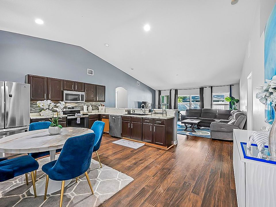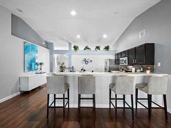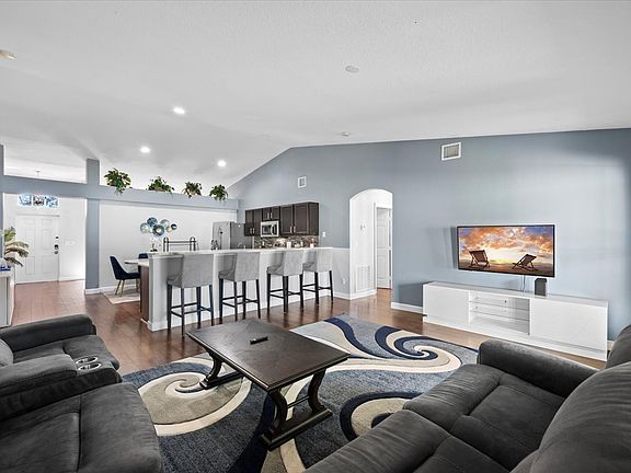 Enjoy a modern, upgraded kitchen with stainless steel premium appliances, cathedral ceilings, and a whole-house water filtration system. The master suite boasts his-and-hers walk-in closets, a luxurious rain shower, dual vanities, and elegant laminate cherry wood flooring. Natural light floods the home through large windows, creating a warm and inviting atmosphere throughout.