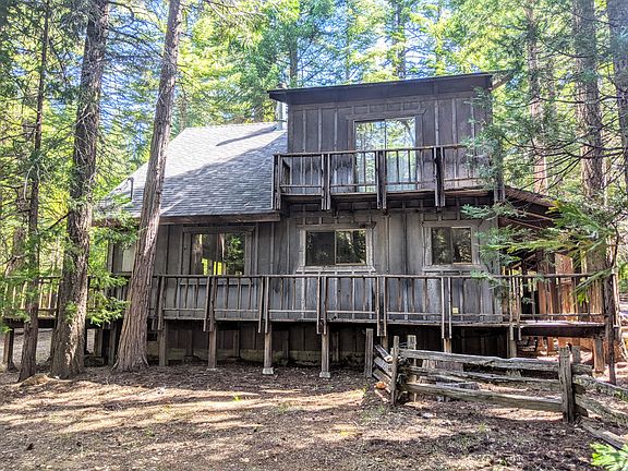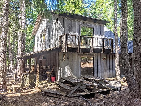 Quite well built mountain cabin. Three bedroom two bath located on 6+beautiful treed acres. Indoor laundry and large pantry. Large two car dettached garage and wood shed. Surrounded by thousands of acres of Sierra Pacific land. This property is a diamond in the rough.