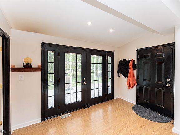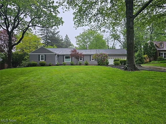 Spacious Serenity: Escape to your own private oasis with this charming ranch nestled on gorgeous 1.38 acre lot where you can envision a garden, a pool or outdoor entertaining spaces. Large eat in kitchen with all appliances to stay. Formal dining room with built in book cases. Great room with infinite adaptability for furniture arrangements. First floor laundry washer/dryer to stay w/half bath. Three bedrooms on main level all with hardwood flooring and full bath. Finished lower level with full bath, glass block windows, storage area and nature stone flooring. Special features include: Hot water heater 2015, Vinyl siding 2018, windows 2021, stamped patio 2022, completely water proofed basement done on exterior with all new drain tiles 2015, AirCrete Insulation interior and exterior walls, both full baths remodeled, gutter guards and gutter heater installed 2018, radon mitigation system installed, water filtration system, crawl space completely insulated. Range and refrigerator 2 yrs. Attached 2-1/2 car garage with heater and workbench, high ceilings ideal for projects, and additional door to get to backyard. Roof, furnace and air ages unknown. Backyard with 2 story shed. Freezer in garage can stay. Ideal location with easy freeway access to get to downtown Cleve and Akron and airport. Near shopping, fine dining, park system hike and bike trails, recreation center with splash park, tennis & pickleball. Call today
