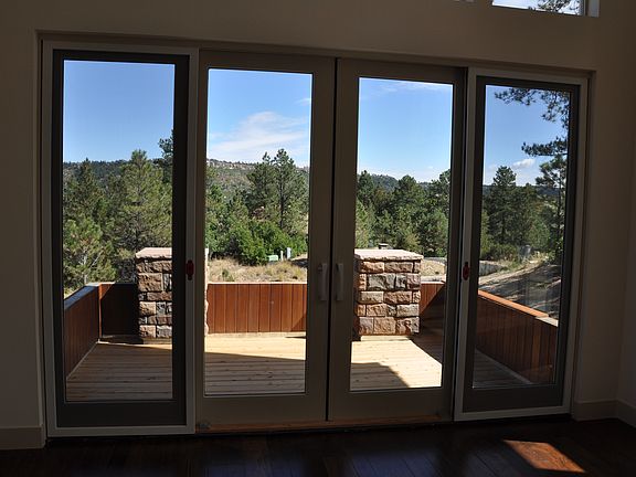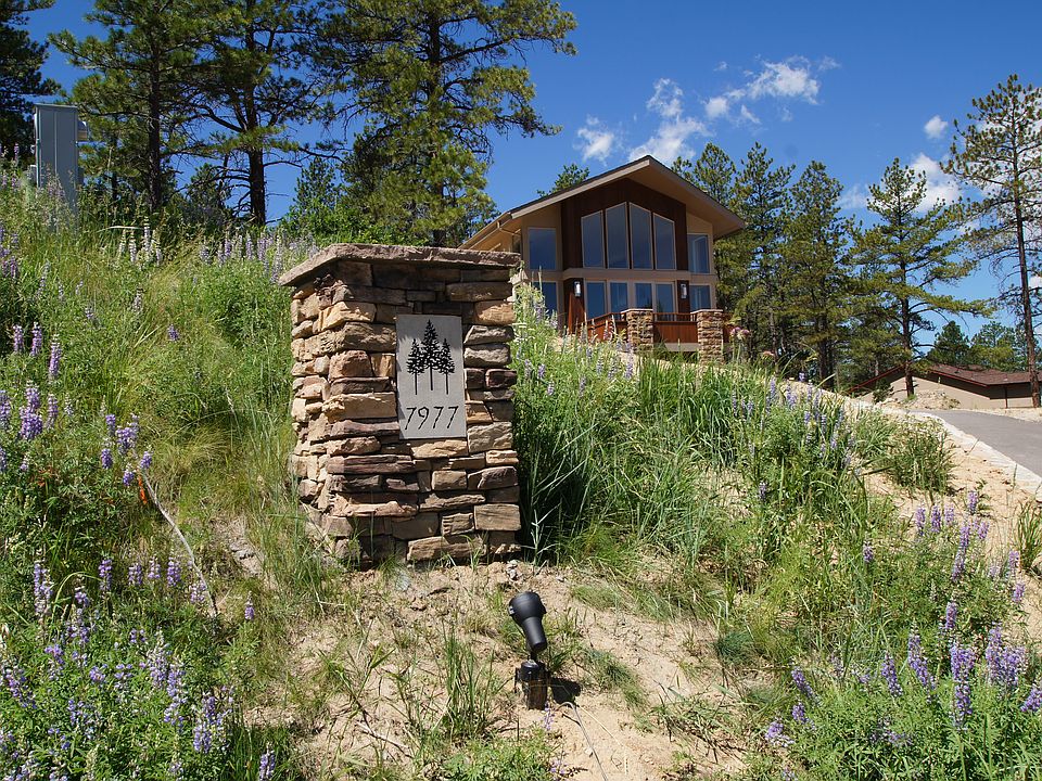 The perfect combination: a stunning open concept home with contemporary touches nestled among the pines on a nearly 2/3 acre lot in Larkspur! Enjoy sunrises from the private front deck and cuddle up at night with the firepit on the spacious patio. Main level boasts massive vaulted ceilings, a remarkable stone fireplace wall, dining area and phenomenal kitchen with Jenn Air appliances, two-tone soft close cabinets & large walk-in pantry. Upper level features a bright master suite with walk-in closet and 5-piece bath, two additional bedrooms sharing a Jack & Jill bath and large laundry room with utility sink & cabinets. Garden level basement has a fabulous rec area, guest suite with corner windows and 3/4 bath along with fantastic storage. The finished & coated 3-car garage offers additional storage with 2/3 being extra deep. Backs to a parcel owned by the HOA! Other additions: Hunter Douglas blinds throughout (many electric), electric dog fence, $70K in professional landscaping & more!