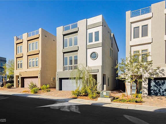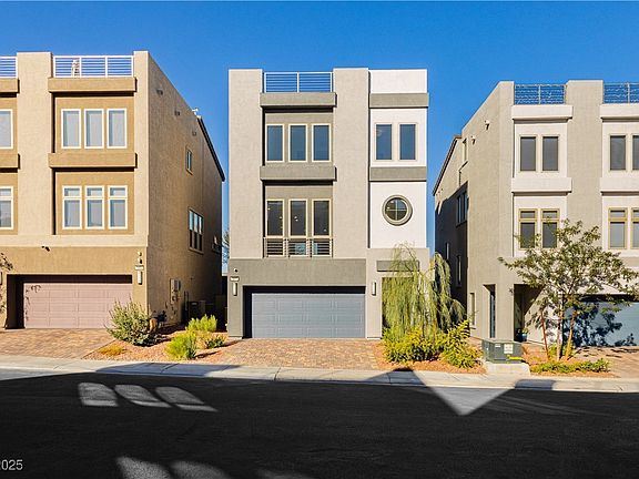 Modern 3-story home in desirable Southwest Las Vegas! This spacious 4 bed, 4 bath residence offers contemporary style, open living spaces, and a stunning rooftop terrace with panoramic views. The sleek kitchen features white shaker cabinets, quartz countertops, stainless steel appliances, a walk-in pantry, and a large island that is perfect for entertaining. The primary suite includes a walk-in closet and spa-like bath with dual sinks and an oversized shower. A first-floor guest suite adds flexibility for visitors or multigenerational living. Additional highlights: two-car garage, low-maintenance landscaping, energy-efficient design, and prime location near the 215 Beltway, shopping, dining, and the Strip. Stylish, functional, and move-in ready!