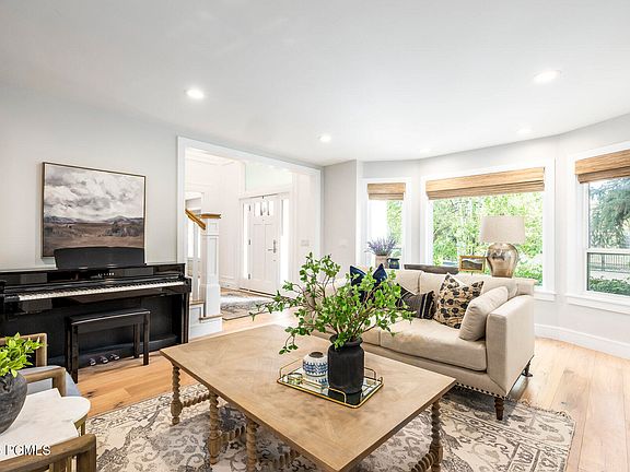Tucked away in one of the most private and serene enclaves of Cottonwood Heights, 7977 Royal Lane is a rare offering of timeless charm and modern luxury. Situated at the end of a quiet gated lane, this South-facing home captures sweeping views of the Wasatch Mountains framed by mature trees and lush landscaping. The grand entry welcomes you with vaulted ceilings, custom millwork, and elegant wainscoting throughout the main floor. An open yet intimate layout offers multiple gathering spaces — including a dedicated office, a cozy living room with fireplace, and a formal dining room that easily seats twelve. The heart of the home is a beautifully updated entertainer's kitchen featuring high-end Thermador stainless appliances, an oversized island, informal dining space, and a custom walk-in pantry. Adjacent, the family room glows with a warm fireplace and opens to a private patio and naturally landscaped, fully fenced yard — ideal for gatherings or quiet evenings outdoors. Upstairs, all five bedrooms share the same level, each with picturesque views of Royal Lane's natural beauty and the Wasatch peaks. The expansive primary suite features a luxurious ensuite bath, while a second bedroom also includes its own private bath. A third full bath and a large laundry room with extra storage complete the upper level. The lower level provides an additional family area with a kitchenette, two bedrooms, and a full bath — perfect for guests, multi-generational living, or recreation. Additional storage areas make room for every need, from holiday décor to pantry staples. Nestled across from the prestigious Willow Creek Country Club & Golf Course, and minutes from both Big and Little Cottonwood Canyons, this home offers the perfect blend of elegance, comfort, and mountain adventure — all with a touch of Upstate New York cottage charm.