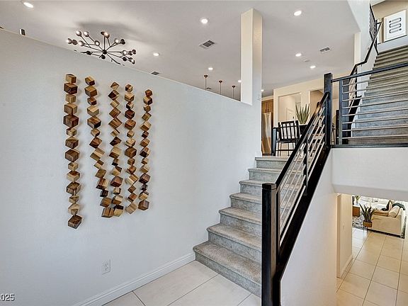 Experience modern luxury at its finest in this brand-new, fully furnished Pulte model home located in the sought-after Cordora neighborhood of Southwest Las Vegas. Featuring over $220,000 in breathtaking upgrades and $70,000 in designer furnishings, this home blends style and sophistication with ultimate comfort. The chef’s kitchen boasts professional-grade stainless steel appliances, quartz countertops, and a spacious island overlooking the elegant great room. Highlights include dual primary suites, a custom wet bar, a private balcony, and open-concept living with designer flooring and abundant natural light. The backyard offers a serene space for relaxation, with a community park just steps away. Move-in ready and meticulously curated—this residence is a rare opportunity to own true model-home perfection.