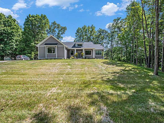 Just Completed NEW HOME! Gorgeous Walkout Ranch on wooded 1 acre. Bike Trail out front. Spacious Open Floor Plan All rooms are large. 9 ft ceilings on both levels. Main floor features: Owners Suite w/Cathedral Ceiling and tiled shower, 2 more bedrooms share bath, Office/4th Bedroom, Huge Great Rm w/ cathedral ceiling & fireplace. Kitchen w/walkin pantry & sliders to covered porch/possible 4 Season Rm, dining Area, 1/2 Bath Mud Room with lockers and laundry. Walkout level has 2 bedrooms, bath, Huge Rec Room. Huge storage room that could be finished for exercise/game rm has Double doors that open outside for easy access of large items. Pickle Ball Court in Driveway.