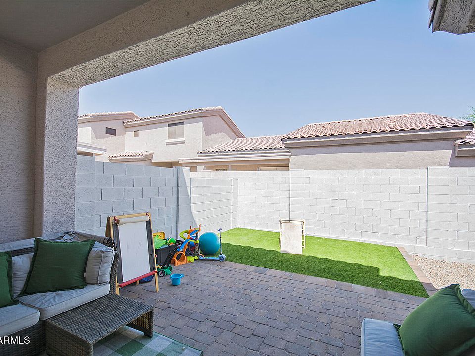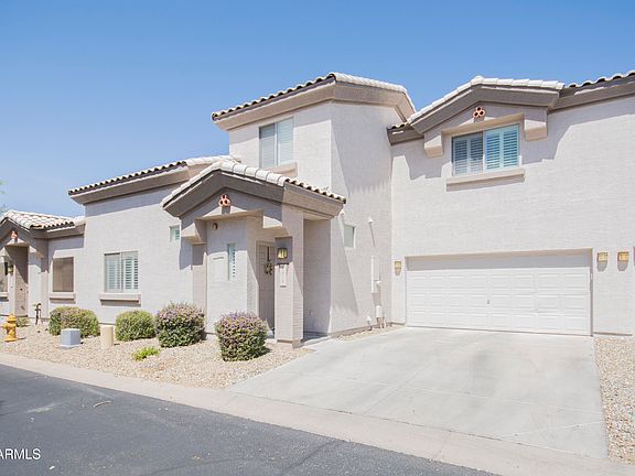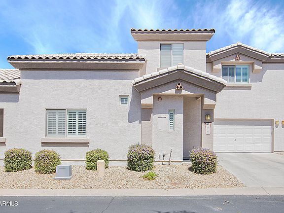 Beautiful 3-Bed, 2.5-Bath Condo in Gated Peoria Estates Community. This move-in ready home features vaulted ceilings, plantation shutters & stylish tile flooring throughout the main level. Kitchen w/granite countertops, stainless steel appliances & walk-in pantry. Half Bath & Laundry complete Downstairs. Upstairs offers 3 bedrooms & 2 bathrooms. Enjoy indoor/outdoor living with a private backyard complete with new artificial grass, pavers and upgraded irrigation lines—perfect for relaxing or entertaining. The 2-car garage offers ample storage with built-in shelving. Prime location near top-tier entertainment, shopping, dining & Peoria Sports Complex, this home offers unmatched convenience. Community amenities: two sparkling pools, basketball court, dog park & access to scenic trails.