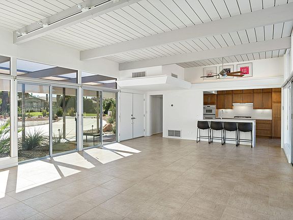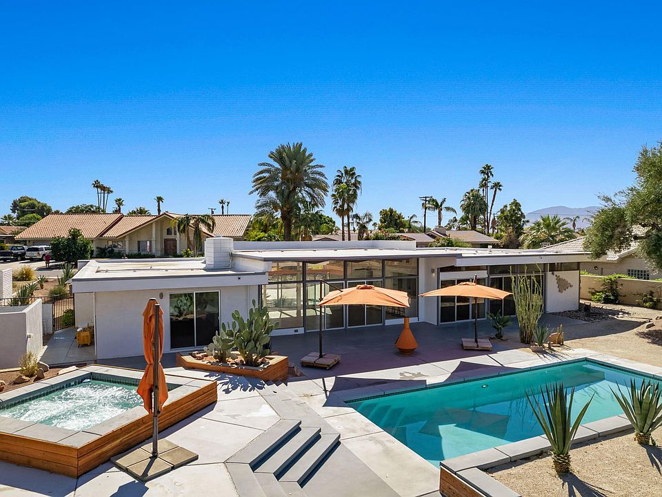 Your chance to own an iconic, Mid-Century pool home on a stunning golf course with explosive mountain views! Situated behind the gates of Bermuda Dunes Country Club and rich with hosting the infamous Bob Hope Classics for 49 years, this entertainer's home features a semi circular driveway, impressive double door entrance with clerestory windows in every room that perfectly feature the our desert mountain tops, the multi level pool area and prized golf course. A rare three bedroom, all ensuite and two feature walk-in closets. Additionally all bedrooms have sliders leading to the pool area and huge outdoor living spaces with too many features to list. BDCC HOA is $199 per month and includes guarded gates of entry, 24 hour security patrol, cable package with premium channels including Showtime & HBO, wifi/internet and all equipment to operate - all included in the HOA fee! In this part of the valley electricity is provided by IID which is significantly less expensive than SCE. Recent improvements include: added foam roof, new HVAC, Quartz kitchen countertops, remodeled 3 bathrooms, replaced 9 sliding doors, replaced carpeting in bedrooms, repainted indoors and outdoors, new pool heater, filter and pump, acid washed pool, new garage door and lift motor, new double front doors, new main electrical feed, new hot water heater, upgraded exterior lighting, upgraded stovetop to gas, added access to septic tank, rewired pole to house, repainted fence and perimeter walls.