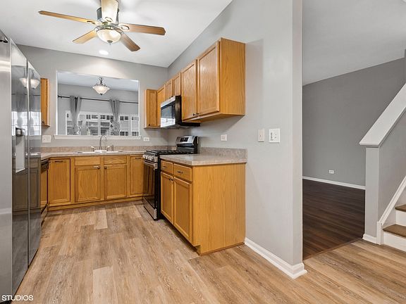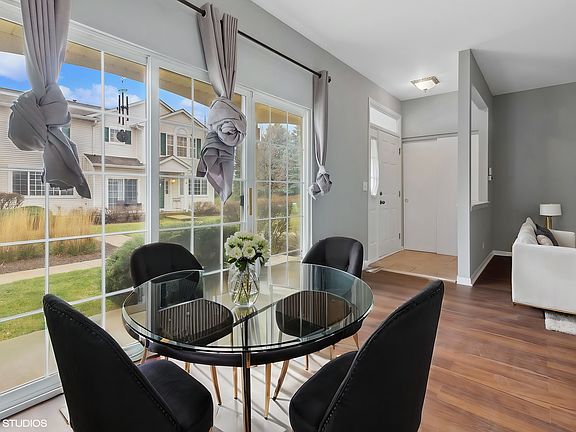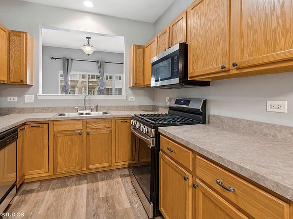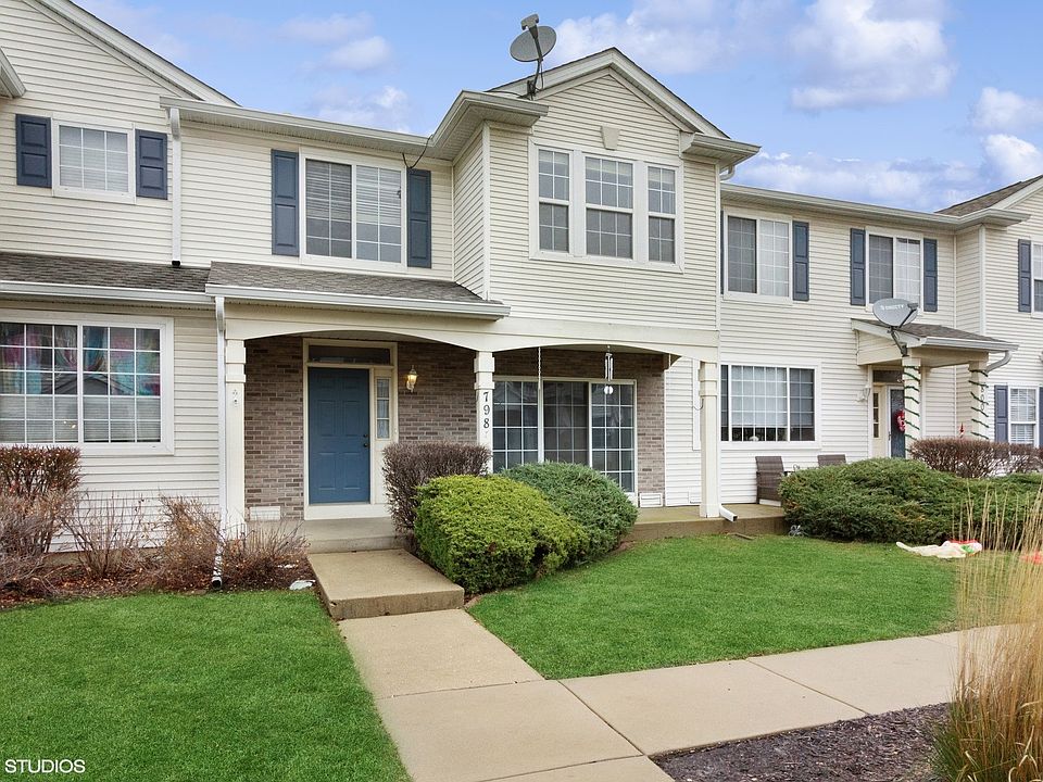 2 bedroom, 1.5 bathroom, and 2 car garage townhome AVAILABLE NOW! The open floor plan seamlessly flows together creating an encompassing space to cook, eat, relax, and entertain! The kitchen offers NEW stainless steel appliances, with oak cabinets and an eating area. The family room has a built-in media niche and a gas fireplace. The dining room includes a large sliding glass door that brings in great natural light and overlooks the courtyard with floral landscaping. The entire home is equipped with luxury vinyl plank flooring that makes cleaning and maintaining the home a breeze. 2nd floor offers 2 bedrooms with a full bathroom. The primary bedroom boasts vaulted ceilings complimented by a ceiling fan with private access to full bathroom. The full bathroom has been recently renovated with Quartz countertops and provides access to the primary bedroom as well as the hallway. Convenient 2nd floor laundry. Close proximity to shopping, dining, and entertainment on Eola rd with easy access to I-88. Highly acclaimed District 204 schools including Young Elementary, Granger Middle, and Metea Valley High School! 1 Year