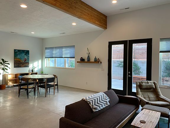 Modern style home in the north Bloomington Hills area. Great neighborhood that is close to town. Polished concrete floors. Quartz counter tops, built in oven/mic. Tankless on demand water heater. 6 inch stud wall construction with blown fiberglass insulation, and the ceiling is blown fiberglass(R-50). Average electric bill is about 120 per month. Membrane roof. Built-ins for all 3 bedrooms. Home includes some smartphone integration - a Rachio sprinkler controller and some smart switches. 325 sq ft detached garage/workshop. It has a wall ac unit and separate heat. I have been using it as a workshop. Wired with 110/220v plugs for tools. Could be a great Casita or Art studio. The house currently doesn’t have fans installed but is wired for them. - Not looking for an agent. - Have appraisal dated 12/04/18 that came in at $344,000 (previous buyer fell through).