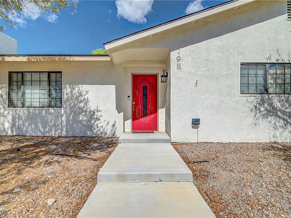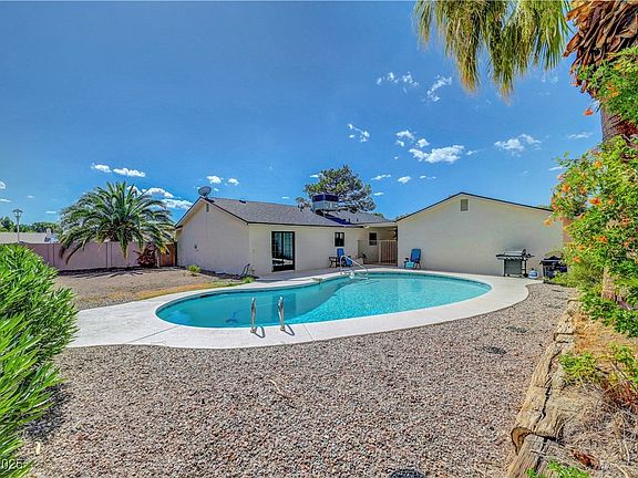 1% toward closing costs available with participating lender and a home warranty of buyers choice up to $700 included-ask for details! Charming Boulder City POOL home! Situated on an approx. 9,500 SF corner lot with NO HOA, a 576 SF detached garage/workshop, and a EXTRA-LARGE driveway with plenty of room to park your boat or toys. One-story, 3-bedroom, 2-bath home offers hickory hardwood floors, a spacious kitchen with granite counters and stainless-steel appliances. Glass sliders from the primary bedroom that open directly to the pool area.