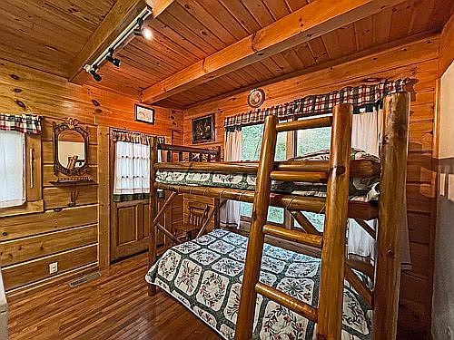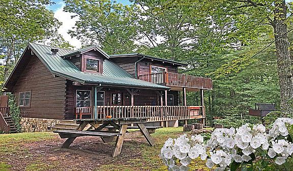 FIRST TIME ON THE MARKET Residential log home and garage with five separate living quarters on approx. 36 acres with SPECTACULAR views of Lake Watauga and the surrounding Appalachian Mountains. This is family-owned property that we have used as a family retreat to build and maintain family bonds. It’s an excellent opportunity to get away from the rush and live in the scenic, inexpensive Tennessee mountains...you can keep it just for family, or you can turn it into income-producing property. The property is at the end of a small county road and is inserted/surrounded on 3 sides by National Forest. The driveway winds up to the home at the top of a small private ridge that has a spectacular view of the lake and surrounding mountains. The home has 3-stories and has 3 bedrooms and 3 baths constructed of 12" square logs with many amenities including a wrap-around-2-sides deck, front porch overlooking the lake, jacuzzi tub, a "man-cave" den with bar, floor-to-ceiling stone fireplace, full kitchen with island, loft, central heat/air, and a separate adjacent 2-car garage matching the home. Four of the living quarters will come furnished if desired, are 1-1/2 story 12" square log construction, 3 bedrooms,1-2 baths and have a hot tub, stone fireplace, full kitchen, loft, central heat/air, front porch overlooking the lake, rear or side deck, and campfire area with a charcoal park grill. The 36-acre property is very private at the END of a short county road and is inserted into the Cherokee National Forest…surrounded on three sides by hundreds of acres of beautiful, peaceful, quiet forest and a small creek and trail leading down to the lake. There is an additional log-sided, 1 bedroom 1 bath 1 story building away from the others that can be used to house more family or whatever you may desire. It is located at the bottom of the ridge more towards the front gated entrance to the property. This property is close to Boone NC to the east, Johnson City TN to the west and Bristol TN/VA to the north, and there is a lovely county airport (6A4) twenty minutes away. Watauga Lake is a deep-water recreational lake, is mostly within the National Forest, is at the top of the TVA lake chain so it is very clean and has several recreational areas and marinas within a few minutes’ drive. In addition, to the above features, the property includes: *Two (2) spots to park an RV with electric and water hookup ; *A large wooden barn that historically was used to dry tobacco now being used for farm equipment; *A large metal/metal frame building – half is a wood-working shop with specialized tools and outlets all around (and even some that lower from the ceiling) and the other half used for project storage, cabin supplies, and other items; *A tall metal/metal frame carport for an RV adjacent to the workshop; *1 or 2 (haven't decided yet), ½ acre adjacent parcels of land with existing city water hookups; *Underground city water system to all but the barn and garage; *Underground electric system along the ridge so the views are not impeded by wires or poles; *Newly installed Ubiquiti 100MB speed internet system; *Newly installed security system.