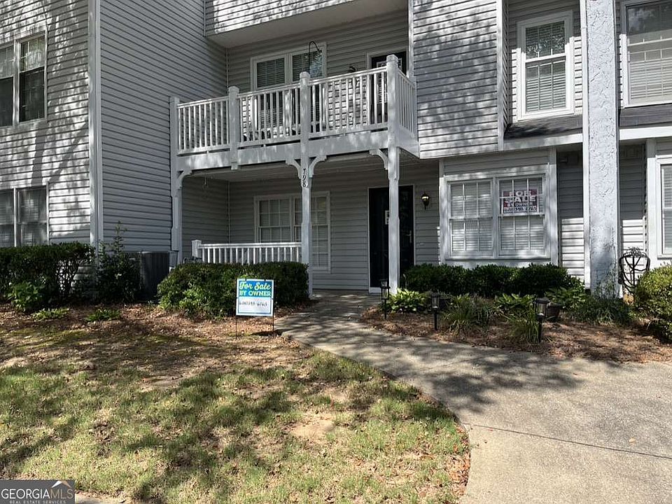 Charming, ground level, move-in ready condo. Easy living on one floor from the front porch to a large living room w/gorgeous fireplace and the spacious bedroom. Includes a bath suite w/ walk-in closet. Steps to the pool and gazebo, short walk to Laurel Park (25 acres of green space, tennis courts, duck ponds, track and playground). Low monthly HOA fees of $179.61 (plus $200 annually) which includes trash, water, exterior maintenance, pool, and common grounds maintenance. Excellent Marietta location!