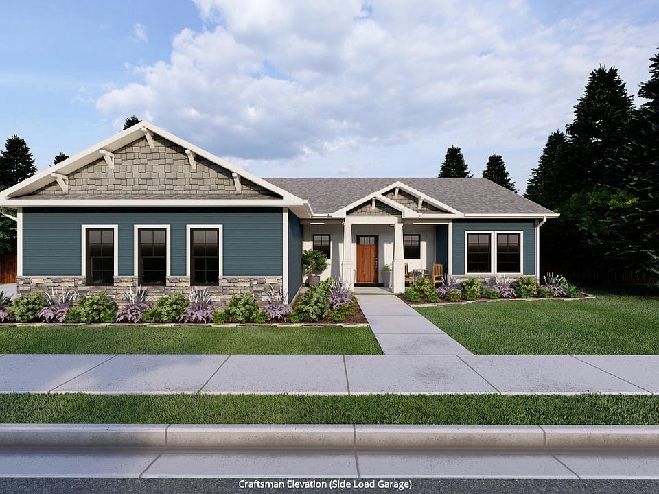 Side load garageSpacious laundryCraftsman elevationDual primary bath sinksPrimary suiteEntertaining areaLots of natural light
