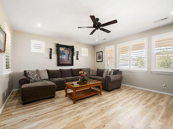 Welcome to Auburn Hills, where this beautiful 4-bedroom, 2.5-bath Spanish-style home offers the perfect blend of comfort, style, and convenience. Situated in a highly sought-after neighborhood close to parks, top-rated schools, the freeway, and new shopping and entertainment options—including Costco, Smith's, and a movie theater, this property has it all! Inside, the well-kept interior boasts granite countertops, stainless steel appliances, pantry, plantation shutters, and LVP flooring. There is also a central vacuum system on both floors of the home. The spacious primary suite with sweeping views of the mountains range features an en-suite with a walk-in shower and a dream-worthy closet. The 3-car garage is a standout with built-in storage, epoxy flooring, a new mini split, and a Level 2 EV charger. Outdoors, enjoy a private fully enclosed patio with turf. As part of this vibrant community, you'll have access to 2 (soon to be 3) pools, a 2.5-acre lagoon, sport courts, year-round community festivities and so much more!