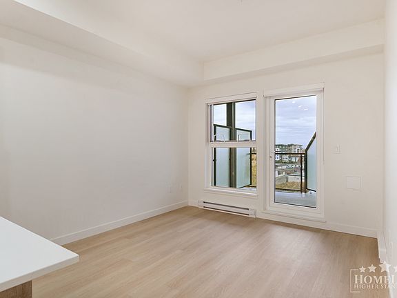This thoughtfully laid-out 1-bedroom + den suite offers around 600 sq. ft. of modern living space. The open layout brings in plenty of natural light, while the den adds valuable flexibility for a dedicated workspace, hobby room, or guest spot. You'll enjoy in-suite laundry, a private balcony, two parking stalls, and one storage locker. The kitchen is polished and practical, featuring sleek cabinetry, stainless steel appliances, and modern finishes throughout.Unit Highlights: Bright 1-bedroom + den, 1-bathroom layout (approx. 600 sq. ft.) Brand-new home with clean, modern finishes Stylish open kitchen with full-size stainless steel appliances Private balcony with open city and mountain views In-suite washer and dryer Electric baseboard heating Two rare dedicated parking stalls One storage locker Rooftop deck with play area, seating, gardens, and skyline vistas Professionally managed buildingPlease Note: 1-year lease term No pets 2M tenant insurance required No smoking Credit check and income verification required