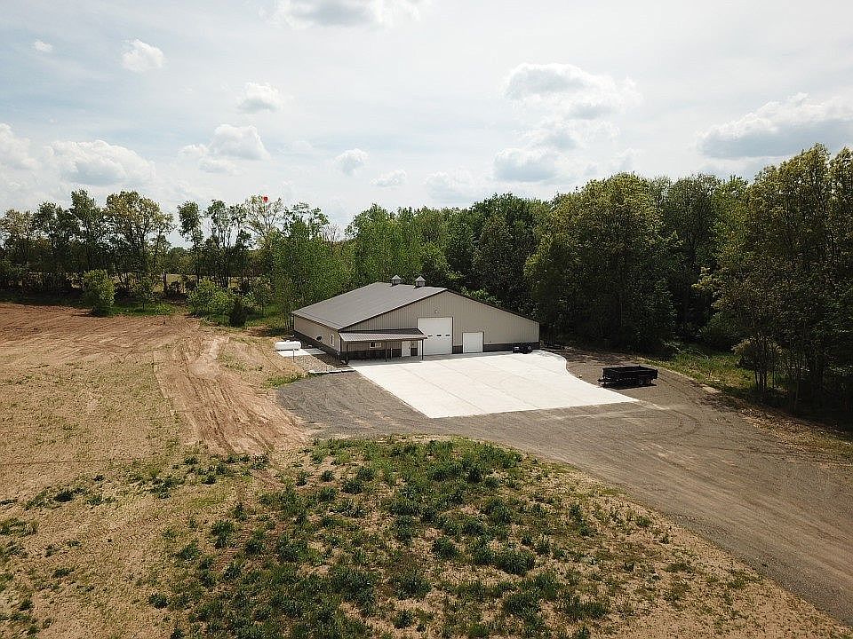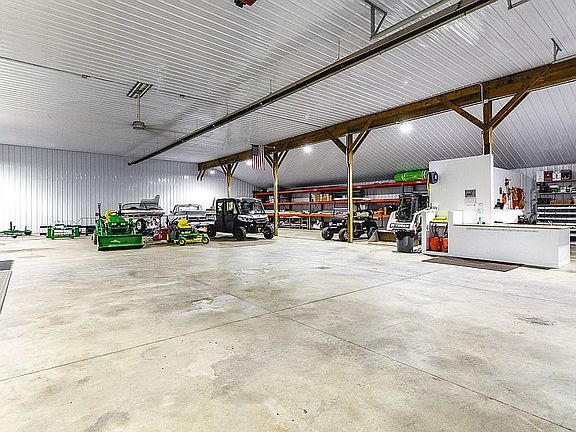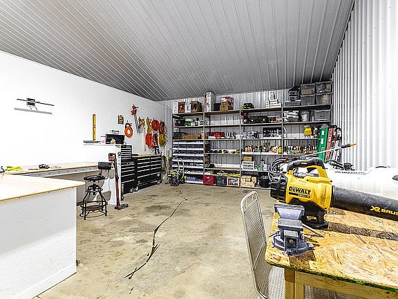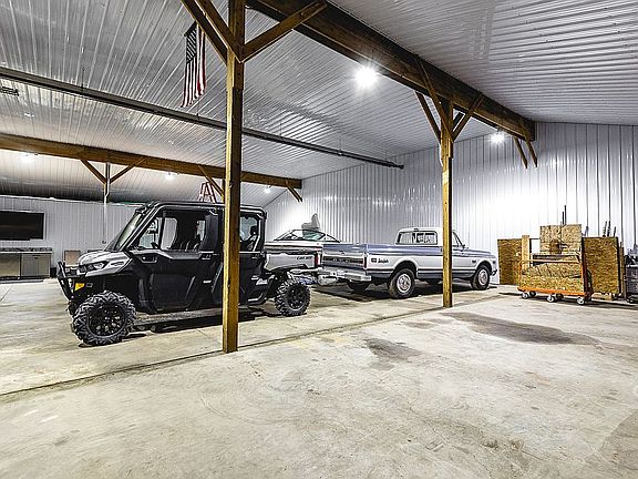 The land is a diverse mixture that includes an old gravel pit, large open hunting land areas, thick woodlands, 1/2 acre pond, small stream with a ridgeline on the bank overlooking high grass wetlands. This is a superb deer and turkey hunting habitat. There is a permanent structure which could be used for a blind or just a place to relax. This property also features an 80x80 pole barn with a 1200 Sq Ft of living quarters. The storage area is heated and contains a 14ft BigAssFan for property air circuilation, (2) garage doors with automatic openers, 70" TV with dry bar and mini refrigerator, floor drain, and shelving. The living area includes an entry room with a gun safe, washer and dryer, storage cabinets, a full bathroom, large bedroom, a great room, and a full kitchen! All appliances and furniture are included in the sale. This includes an additional 70" TV in the living room as well as a large leather U shaped couch. The potential of this property is limitless.
