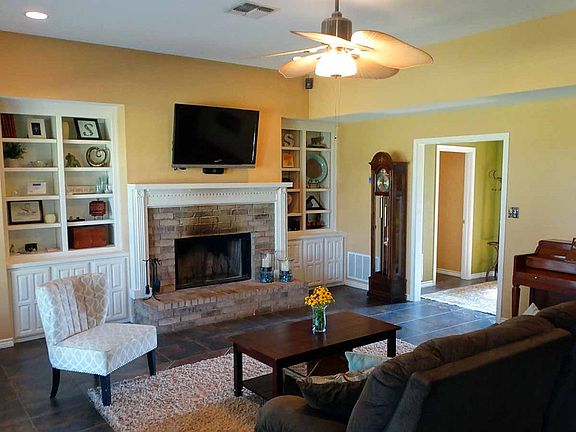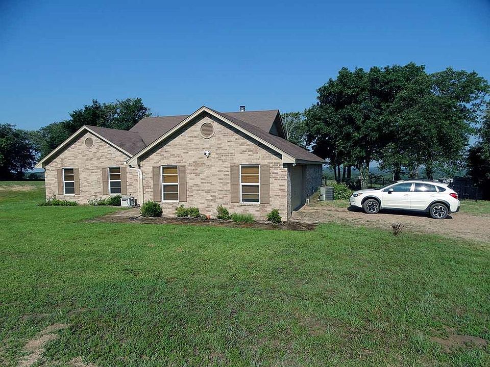 Country home on 1.2 acres in quiet setting. Spacious living area with wood burning fireplace and backyard views. Kitchen has granite countertops and stainless-steel appliances. Split floorplan with spacious master bedroom and bath. The backyard area offers panoramic views along the western horizon with spectacular sunsets. Deer and other wildlife frequent the area. Deep Wilcox Aquifer water well services the house. Large fenced backyard for pets and small chicken coop with separate space for chickens. Covered patio across the back of house offers space for relaxing and entertaining guests.