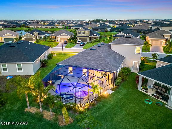 A stunning property that offers luxury living at its finest. This beautiful home showcases the popular Destin floor plan, with its spacious layout and top-notch features, this property is sure to impress. As you step inside, you'll be greeted by an inviting atmosphere created by the high ceilings and 8' interior doors. The spacious kitchen features granite countertops, stainless steel appliances, gas stove, and 42'' designer cabinets. The generously sized bedrooms offer plenty of space for a growing family or accommodating guests. The property includes a sizable loft that can be utilized as a home office, playroom, or entertainment area.The possibilities are endless. The two-car garage is equipped with professional epoxy flooring that adds durability and a sleek aesthetic. Step outside and discover your own private oasis. The saltwater pool and spa is perfect for relaxing and enjoying the beautiful Florida weather. The pool area is complemented by professional lighting, creating an inviting ambiance both during the day and at night. The backyard landscaping is meticulously designed, providing a tranquil and picturesque setting for outdoor gatherings or personal relaxation. As a resident , you'll also have access to the future Addison Village amenity center. This exclusive facility boasts a clubhouse, resort-style and lap pools, tennis courts, and more, offering endless opportunities for leisure and socializing. Located in the desirable Viera community, this home is conveniently situated near premier shopping, dining, and entertainment options, ensuring you'll never be far from the best that Viera has to offer.