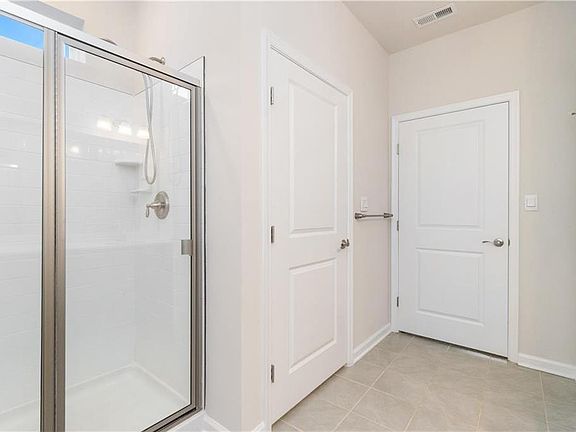 - Description: Tile Floor, Dual Vanity, Tiled Walk-In Shower W/ Bench and Glass Door, Water Closet, Linen Closet