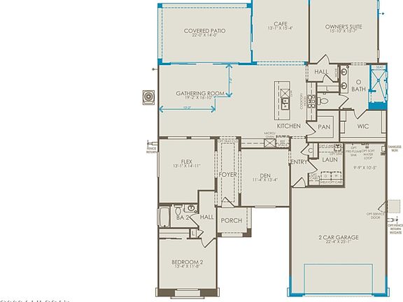 Welcome to the Serenity open floor plan, ready now, featuring 2 bedrooms, a den, a flex room, 1 full bath, & 3/4 bath in the owner's suite. Highlights include 10' ceilings, walk-in pantry, tankless water heater, & gas hookups. The kitchen offers upgraded Regal White cabinets, chef's layout with SS cooktop, hood, and wall-mounted microwave/oven combo. The owner's suite includes a framed walk-in shower. Pre-wired for ceiling fans and pendant lighting, with many tasteful design selections. The clubhouse will open in 2025.
