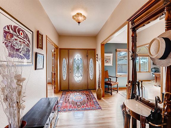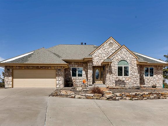 Welcome to this beautiful home in Perry Park East on over 5 Acres of private land. From the moment you pull up the drive, you'll know that this property is special. The home is situated on one of the highest lots available in the community providing it with breathtaking views of the surrounding area. You'll fall in love with the big open floor plan, vaulted ceilings, and views from almost every room. Some of the recent updates include a new exterior deck off of the main level, a fully remodeled 5-piece master bath with a modern soaking tub and river rock shower, an updated kitchen with quartz counters, stainless steel appliances, custom cabinets and so much more. The secondary detached garage makes a perfect workshop or storage area for all of your toys. Enjoy living in the foothills away from the world while only being a few minute drive to the quaint town of Larkspur.