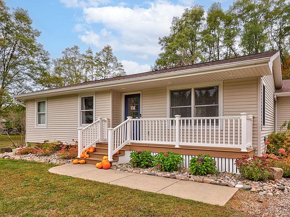 Country charm at its finest! Here you will enjoy a 4 bedroom, 2 bath home situated on a corner lot and 1.3 acres. This home was completely renovated approximately 10 years ago and has been extremely well cared for since. Upon arrival, you will be greeted by a composite front entry porch. Inside you will find LVP floors throughout with matching doors and trim. The kitchen is complimented by custom hickory cabinets and stainless appliances. The basement offers over 500 sq. ft. of recreation as well as a bedroom with ensuite and walk in closet. A storm shelter can also be found in the basement. Several of the exterior features include an oversized 2 car attached garage, pole barn, and storage shed. A composite deck, located directly off the kitchen, is a perfect space for gathering, relaxing, or grilling up your favorite meal. This home is truly turn key and ready for you to call it home!