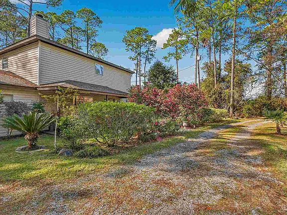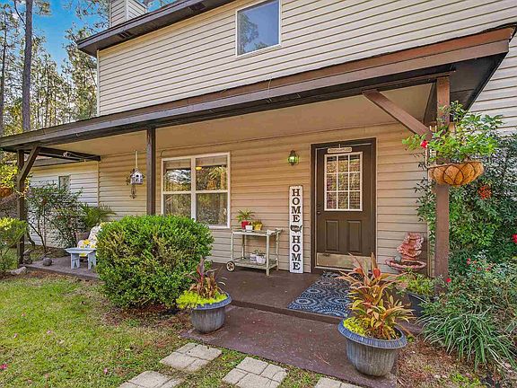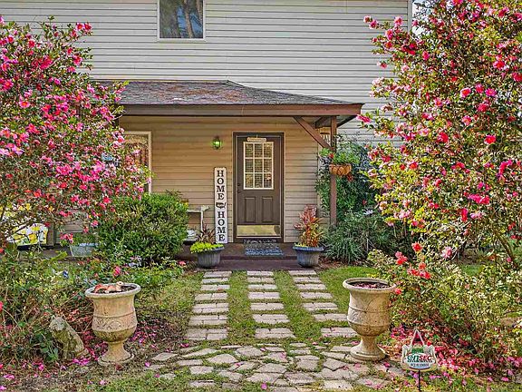 Set privately on a .83-acre lot, this distinctive two-story, three-bedroom, two-bath home is surrounded by mature trees, lush landscaping, and flowering shrubs, creating a serene, secluded setting. Inside, the main level features a flowing layout with a combined living and dining area with a fireplace that naturally connects to a cozy breakfast nook, perfect for casual meals or morning coffee. The kitchen opens from here, offering both functionality and charm. A spacious first-floor bedroom serves as the primary suite, with plenty of room for a sitting area, abundant natural light from multiple windows, and with its own private exterior access. The first floor also includes a full bathroom, laundry area, and a flexible bonus space currently used as an office, ready to adapt to your needs. Upstairs, the open-concept floor plan leads to a comfortable sitting area and a versatile space adaptable to your needs. The sitting area also opens to a private screened balcony, creating a bright and inviting space. Two bedrooms share a full bathroom, and a central area provides access to a walk-in closet. This upstairs space offers endless possibilities to suit your lifestyle. Attached to the home is a one-car garage with automatic doors on both the front and back, allowing for complete drive-through access, as well as an enclosed lean-to for all your storage and lawn equipment needs. The garage also includes a finished room, perfect for a gym, workshop, hobby space, or extra storage. The property also includes a 30-amp RV hookup. Outside, a charming pavilion with a fireplace invites you to relax and enjoy the peaceful surroundings, ideal for entertaining or quiet evenings. If you’re looking for even more space and privacy, an adjoining parcel of just over 1 acre is available for purchase, offering ample room to expand, play, and enjoy ultimate privacy. Don’t miss the chance to experience this distinctive home and its beautiful, secluded grounds. Schedule your showing today!