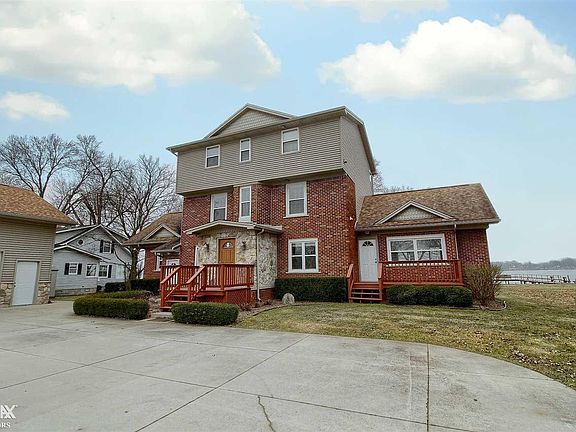 Extensively updated, beautiful riverfront property! Almost an acre lot with 100' of river frontage! Sprawling home with 5 bedrooms & 4 bathrooms. Can be used as a multi-family, the property is already set up with separate utilities in place. Each floor level has kitchen, living room, bath, bedroom and laundry room. 4 car knotty pine garage with A/C and bathroom. 3 boat hoists with dock, steel seawall. Stunning river views!