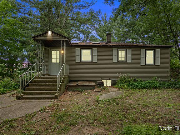 Incredible investment opportunity with 100' of beautiful private frontage on desirable 170-acre, All sports, Pettit lake. Home offers a huge kitchen/dining area with cathedral ceilings. There's also a large living/family room with fireplace and access to deck with gorgeous lake views. Full Walkout basement is partially finished and has tons of room for additional living space. House needs repairs and updates throughout. There is a new roof and replacement windows. This is an unbeatable nearly ½ acre wooded lot with hilltop views and beautiful private waterfront area. Prime location right around the corner from Croton Dam and The Muskegon River yet 35-40 minutes to Grand Rapids. Perfect vacation retreat, short-term rental, or year-round Lake Living. Hurry to show, Fast possession!