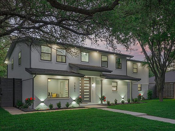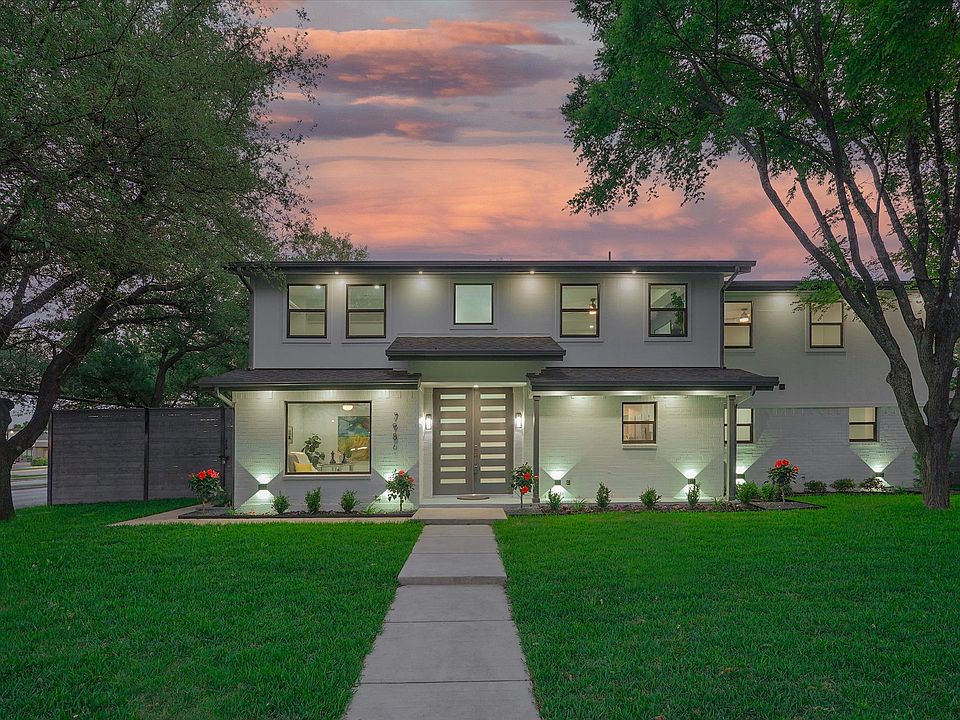 GORGEOUS contemporary 5-bed home with sleek cabinetry, quartz counters, modern light fixtures, electric FP, wine fridge, & tankless water heater. This gorgeous home has an office space, 3 master suites, & a game room or 2nd living space upstairs. Guest bed downstairs. The kitchen has an extra separate waterfall island, quartz counters, stainless steel appliances, and lots of storage spaces. Garage is in the back with extra long driveway to fit a RV or a boat. Modern 8-ft surrounding fence with an electric gate and up-lights to brighten up the house at night. Award winning RISD schools. Walking distance to Shops of Promenade, restaurants, & shopping centers. This property borders Richardson. Minutes from JJ Pearce High School, 635 and 75.