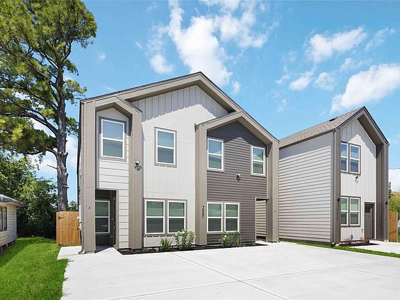 Brand-new duplex available for immediate move-in, each unit leasing for $1,800 per month. Each unit offers 3 bedrooms, 2.5 bathrooms, and 1,399 sq. ft. of living space with an open-concept floor plan, high ceilings, recessed lighting, tile flooring on the first floor, and a modern kitchen with quartz countertops, decorative backsplash, soft-close cabinets, and stainless-steel appliances included. All bedrooms are upstairs, including a spacious primary suite with private bath and walk-in closet, plus window blinds, ceiling fans, a laundry room, and first-floor half bath. The backyard is fully fenced with a covered patio, and the property is conveniently located near Downtown Houston and the new LBJ Hospital campus.