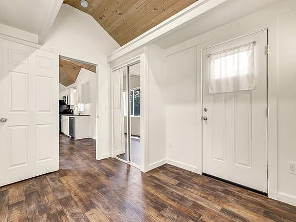ADU on lot with mini-split, quartz counters, tankless water heater, laundry & stone fire pit area. Semi furnished with twin sized bed frame, couch, dining table and basic kitchenware. Water and trash included. Great location in the Garden Home area with a park nearby. Rent is month to month. Tenants in main house there are two separate gates for entrances.