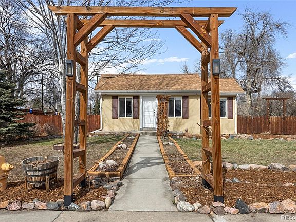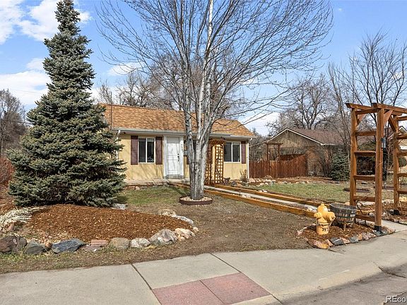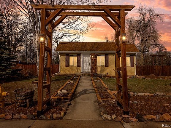 Step inside this updated home to be greeted by an abundance of natural light flooding the open layout and vaulted ceilings. The interior is further enhanced by new carpet, fresh paint, engineered hardwood floors, and striking exposed wood beams, creating a warm and inviting atmosphere. Outside, the detached, over-sized 2-car garage provides ample storage space, while the private backyard is a gardener's delight, complete with a garden bed brimming with a variety of fruits and vegetables, and a cozy fire pit area for outdoor gatherings. The installed solar system also makes efficient use of the Colorado sunshine to help lower your utility bills. Situated on a spacious corner lot, this updated home boasts a prime central location offering easy access to the mountains, as well as nearby shopping and dining options.