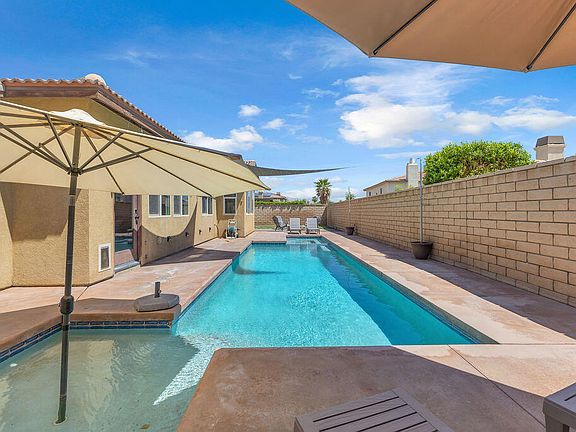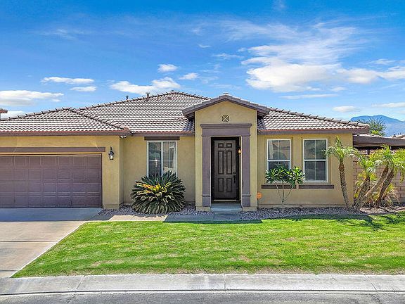Welcome to this exceptional home in the desirable Talavera community! Offering over 2,917 square feet of meticulously maintained living space, this 5-bedroom, 3-bathroom residence seamlessly combines style and functionality. The expansive and sunlit open kitchen is a chef's delight, featuring granite countertops, stainless steel appliances, and elegant dark cabinetry with modern fixtures. Enjoy meals in the spacious dining area or at the convenient bar seating.Inside, additional upgrades include new can lighting in the front and rear living rooms with energy-efficient LED replacements, enhancing the home's warm ambiance. The flooring has been thoughtfully updated, with stunning tile in the front and rear living rooms and one bedroom, while two other bedrooms boast durable laminate flooring. Recently upgraded systems include a newer AC unit, garbage disposal, and water heater for added peace of mind.The master suite is a true retreat, showcasing a luxurious and oversized walk-in closet, and a spa-inspired bathroom with a separate shower and tub--perfect for unwinding after a long day. Each bedroom is generously sized with ceiling fans, making them ideal for family, guests, or a home office.Exterior enhancements elevate the property's appeal with an added pool & spa, a sophisticated patio cover, stylish pavers, and a cozy fire pit. For practicality, there's cemented RV parking complete with 220 electrical hookups. The professionally designed landscape further underscores the home's impressive curb appeal.Situated in a fantastic location, this home is conveniently close to Acrisure Arena and the renowned Classic Club Golf Course, offering plenty of entertainment and recreation options just a short drive away. Discover the perfect blend of comfort and elegance in this wonderful Talavera home!