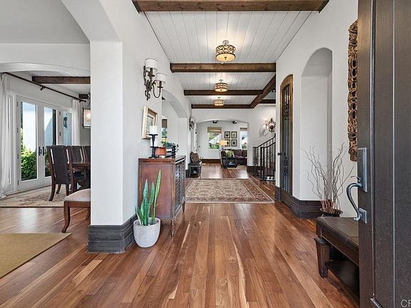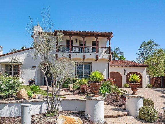 $105K PRICE IMPROVEMENT!! CALL FELIX TODAY FOR A SHOWING 619.708.1734 Stunning Spanish-inspired estate located in the exclusive guard-gated community of The Crosby. Situated on a premier 14,855 sq ft private cul-de-sac lot with panoramic mountain and evening light views. Fully owned solar for the home and pool! This entertainer’s dream offers a resort-style backyard featuring a sparkling pool/spa with a brand new automatic cover, custom fire fountain, full outdoor kitchen with pizza oven, Lynx BBQ, custom cabinetry, 2 refrigerators, expansive counters, a pool changing room with a full bath, and expansive RV parking. Inside, enjoy a beautifully designed open floor plan with Richard Marshall walnut flooring, wood beam ceilings, formal living and dining rooms, and a spacious family room. Chef’s kitchen includes custom cabinetry, large island, Sub-Zero refrigerator, Wolf range/microwave, and a really quiet Bosch dishwasher. The first floor features an en suite bedroom, executive office, powder room, and a full laundry room with ample cabinetry. Upstairs, the luxurious primary suite boasts a private deck with spectacular views, custom built-ins, soaking tub, walk-in shower, dual vanities, and a large walk-in closet. A second en suite with a private patio and 2 additional bedrooms complete the upper level. Additional upgrades: dual-zone A/C, surround sound wiring (interior/exterior), 2 water heaters, 2 furnaces, custom fireplaces, updated lighting, and newer pool equipment. A true turnkey luxury home in one of San Diego’s most desirable communities.
