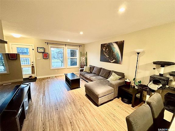 Welcome to 7989 Canola Ave. This beautiful 2-bedroom, 2.5-bath townhome boasts over 1,400 sq ft of usable living space and is located in Regina's booming Westerra neighbourhood, close to the location of the new Costco and other upcoming developments. Inside, you are greeted by the open concept main floor, complete with a large living room, nicely laid out kitchen that includes a large eat-in peninsula, tons of natural light and ample storage. Upstairs, you'll find the first bedroom, which is serviced by its own 4-piece ensuite and walk-in closet. Down the hall, you'll find the second-floor laundry on your way to the primary bedroom. The primary provides lots of room to unwind and relax, and is complete with a large walk-in closet space and a private 4-piece ensuite. Downstairs in the basement, there is even more living space that could easily be converted into a third bedroom if needed, or you could just keep it as a great space to hang out and enjoy time with friends and family. Outside, you'll find your own little private oasis, complete with a patio, gazebo, and lawn area for extra living and entertaining space! Book your private viewing today!