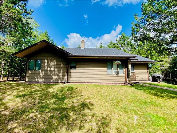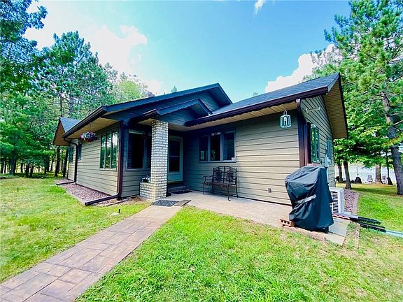 Rare opportunity to own a one-of-a-kind setting on Bond Lake with level elevation and zero steps from cabin to shore. Nestled on 2.8 private acres with 153 feet of sandy frontage, this property is perfect for swimming, games, and lakeside living. The one level home features 3 bedrooms, 2 baths, and an open-concept living area that captures lake views. A large garage offers ample storage, while a cozy bunkhouse provides extra space for guests. The yard is beautifully landscaped with a fire pit for gathering, and the asphalt driveway adds convenience. With its sandy beach, usable level yard, and peaceful wooded backdrop, this property blends comfort with true Northwoods charm. Rarely does a setting like this become available on this sought-after waterway. An ideal place to relax, entertain, and enjoy lake life.