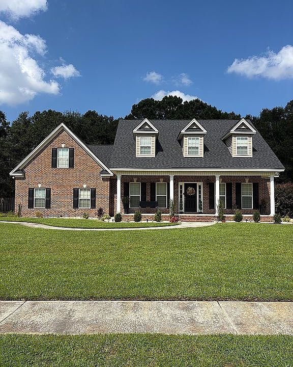 Full Brick Low Country mostly one story home on .62 acre lot that is fully fenced with zoned irrigation system and dog run. Side Entry Garage. Hardwood flooring in great room and dining room. Functional split floor plan with master suite in rear of home and two bedrooms on the other wing of the home with upstairs bonus room or fourth bedroom. All one story living except for bonus room/4th bedroom! Community pool, playground, gazebo, street lights and sidewalks. Bryan County Property tax INCLUDES trash pick up, recylce pick up every two weeks curbside and fire department dues. Great low maintenance living! No Flood Insurance Required! Bonus room is the 4th bedroom (unfinished closet @ attic entrance). All neighborhood Brigham Lakes lots are at least 1/2 acre lots or bigger, brick, stucco or hardie board, raised slab foundations and no chain link fencing.
