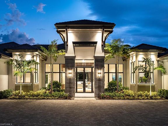 McGarvey Custom Homes presents an extraordinary new construction estate in one of Naples’ most sought after locations. This architectural masterpiece blends timeless sophistication with modern luxury, offering private resort style living just moments from world class beaches, dining, and shopping. From the moment you arrive, the property makes an unforgettable impression with dramatic architectural lines and honed quartzite elevation accents. Custom Cantera steel double entry doors open to a stunning glass lined foyer that frames views of the expansive outdoor oasis. Two gated driveway entrances lead to an impressive brick paver motor court offering both convenience and security. Alfresco ready, the residence features an exceptional outdoor living area complete with water features, a custom pool, spa, sun shelf, outdoor kitchen, dining area, fireplace, and a separate firepit—perfect for relaxing or entertaining. Shellstone porcelain deck pavers, lush tropical landscaping, a mosquito mist system, and automated screens and hurricane shutters enhance both comfort and peace of mind. Inside, the home’s designer curated interiors deliver unmatched refinement. The plan includes five spacious bedrooms, six full baths, two half baths, a private study, and a versatile flex room. A divided layout provides ultimate privacy, with the luxurious primary suite on its own wing. Throughout the home, you’ll find distinctive ceiling details with accent lighting, white oak hardwood flooring, level 5 smooth-walls, and beautifully executed tilework. The gourmet kitchen is a chef’s dream, featuring bespoke cabinetry, an oversized island with Caesarstone Darcrest honed quartz, Pompeii quartz perimeter countertops, designer plumbing fixtures, and a Sub Zero/Wolf appliance suite. Under and above cabinet lighting with glass accents highlight the craftsmanship and create a warm, inviting atmosphere. The primary suite is a serene retreat with panoramic views of the pool and lush rear grounds. The spa inspired bath offers a freestanding soaking tub, walk in shower, dual vanities, premium cabinetry, quartz countertops, and his and her water closets featuring Toto automated toilets. Walk in closets with custom storage and a private courtyard view complete the space. A morning bar and undercounter refrigerator add an extra layer of indulgence. Designed with modern living in mind, the home features an advanced low voltage electrical systmem, automated lighting controls, whole home standby generator, landscape lighting, and wiring for data, voice, and video. Efficiency and comfort are further enhanced by Icynene spray foam, sound batt insulation, high efficiency HVAC with dehumidification system, tankless gas water heaters with recirculation, and a 1,000 gallon propane tank. Fully furnished by Tina Marie Interiors, this exceptional estate offers a rare opportunity to own a luxury residence that merges exquisite design, premium craftsmanship, and the best of Naples’ lifestyle.