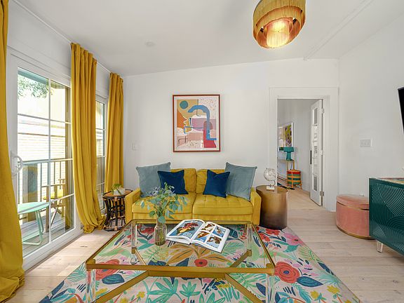 This 1 bedroom apartment is adorned with color inside and out. From the sunroom living space to the hallway that leads to the bedroom with a custom glass curtain wall allowing for more light throughout the space. The custom closet built-in is a vision in itself. This European influenced kitchen is perfect for entertaining with a communal table situated in the heart of the room.