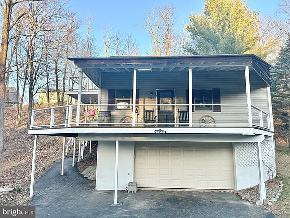 Primary bedroom has deck access thru sliding doors, loft bedroom has balcony access thru French doors. Wrap-around deck, new garage door & Man door. 6 speakers inside and 2 speakers on front deck for surround sound. The current owners of this home in Lake Wynonah have done the following since moving in 5 years ago. They added new baseboard heaters and new thermostats, added a closet in primary bedroom, added tub/shower in bathroom, newer electric water heater, resealed the driveway, replaced and painted deck boards, railings and stairs, added new cable thru deck railings, painted inside entire house, updated kitchen dining area. This property has been well taken care of and is ready for a new owner.