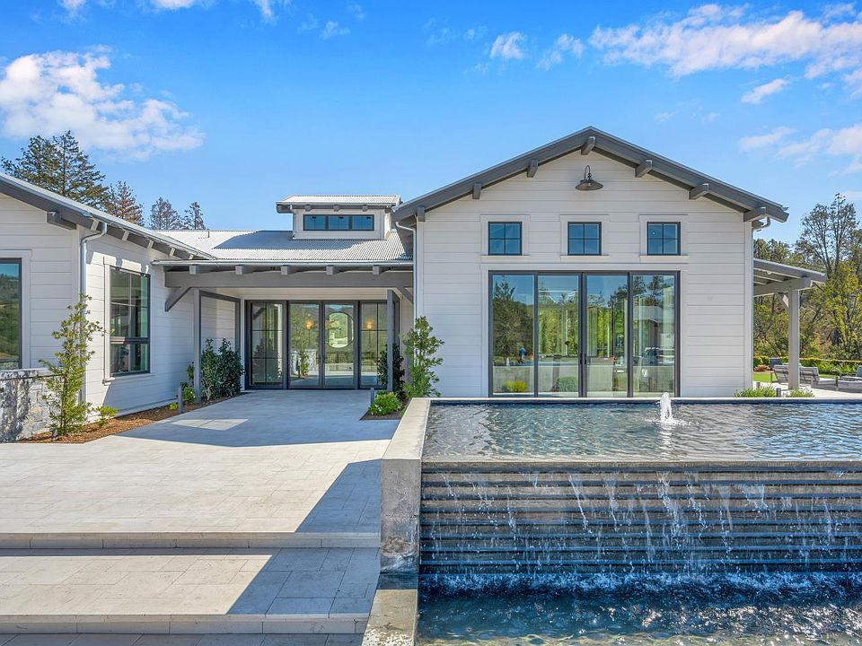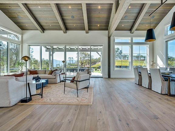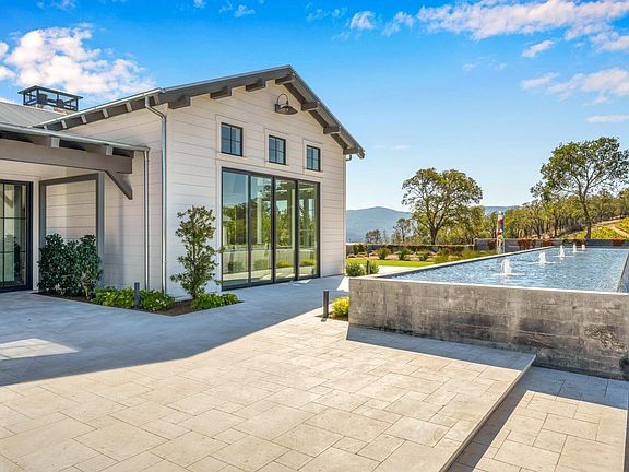 A luxury estate set on 8.04 acres across from the famed upper ridge vineyards of Joseph Phelps, this property has been meticulously designed to maximize privacy, capture vineyard vistas, and harmonize with the surrounding topography. The 7,920 sq. ft. main residence showcases four bedrooms and is constructed with the highest quality materials and finishes. Inside, the home features a dramatic great room, a true chef's kitchen, office/study, walk-in wine cellar, media lounge, and a primary suite with its own private entry lounge. A secondary 1,200 sq. ft. dwelling offers two bedrooms, a full kitchen, living room, and covered patios at both the front and back, providing ideal accommodations for guests. Outdoor living is equally compelling, with more than 2,600 sq. ft. of covered space designed for seamless indoor/outdoor living. Expansive limestone patios lead to a fully equipped outdoor kitchen with pizza oven, resort-style pool and spa, two firepits, an outdoor fireplace, and a bocce courtall thoughtfully crafted for both intimate gatherings and large-scale entertaining.